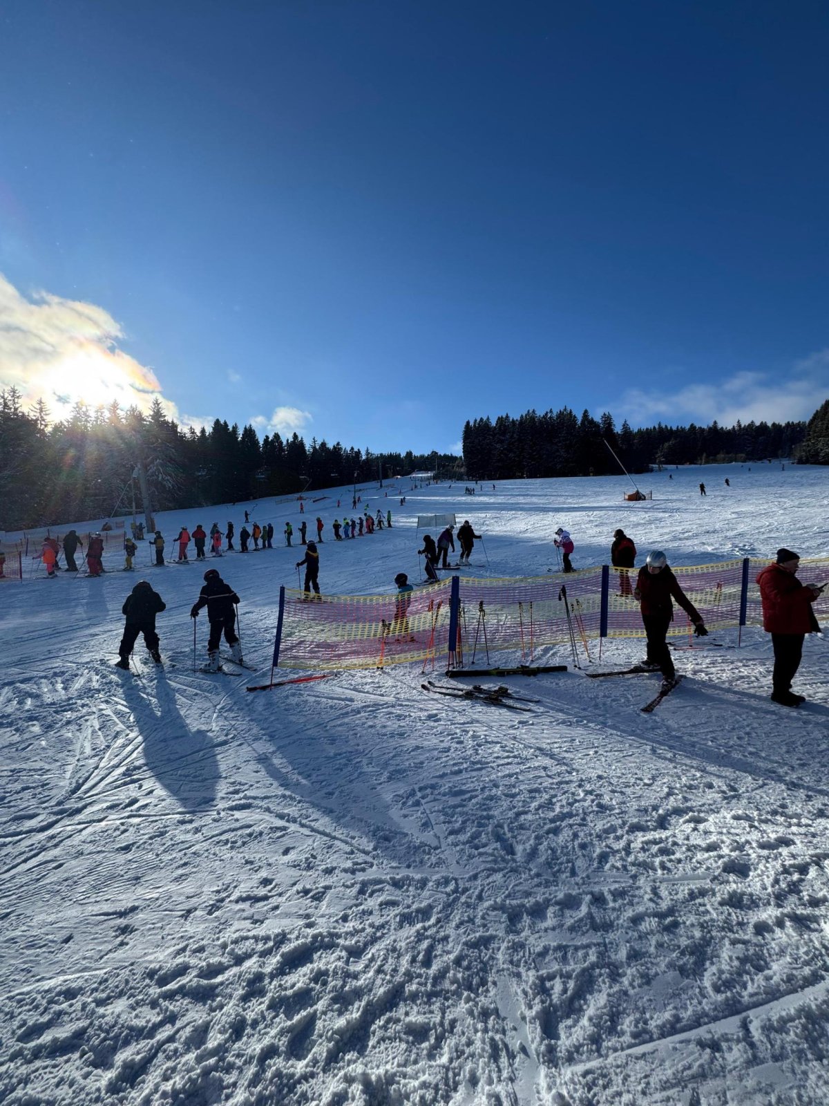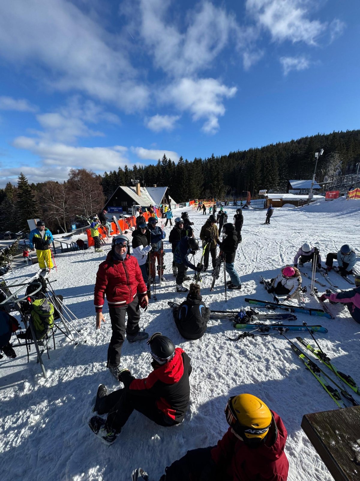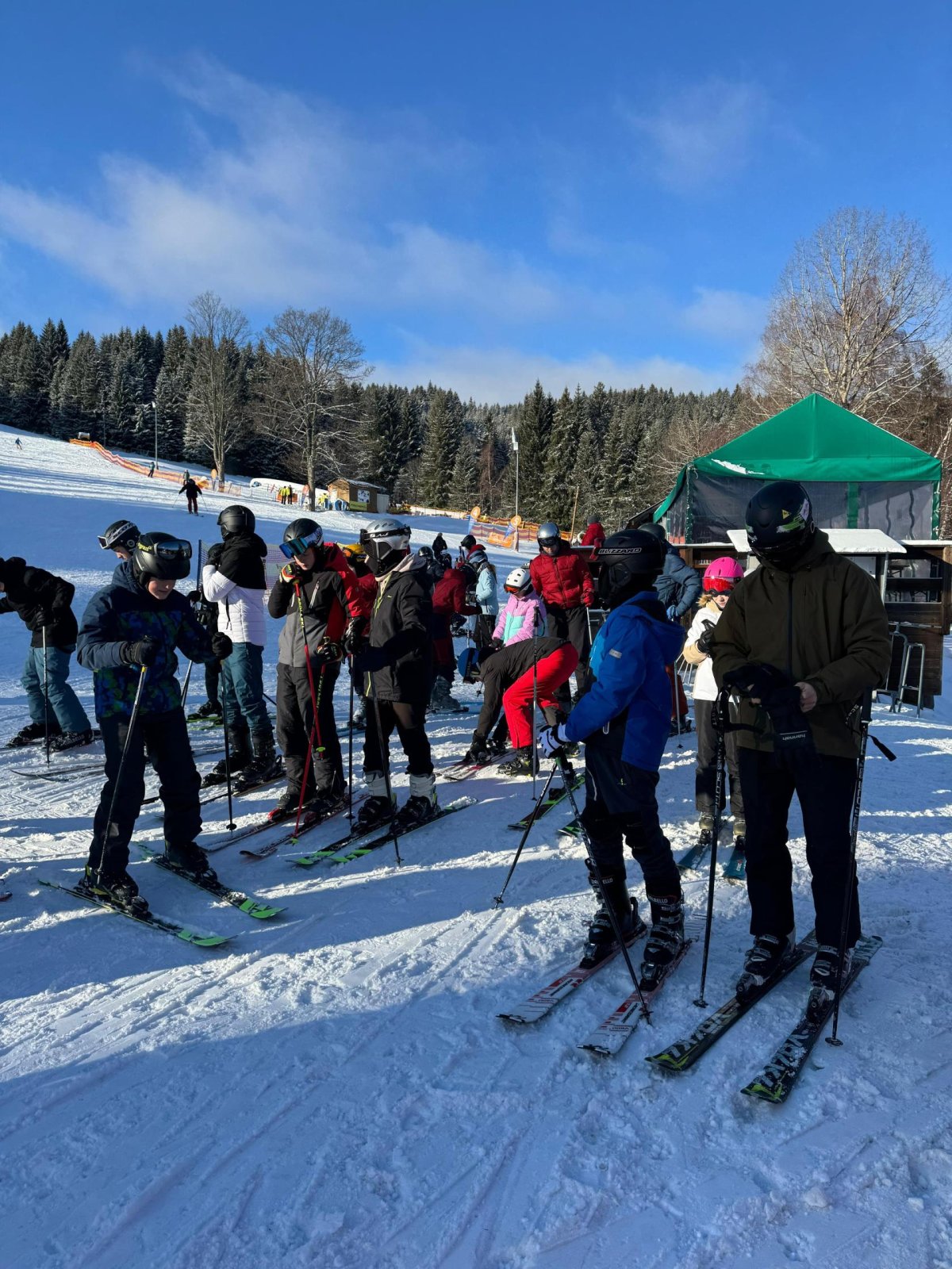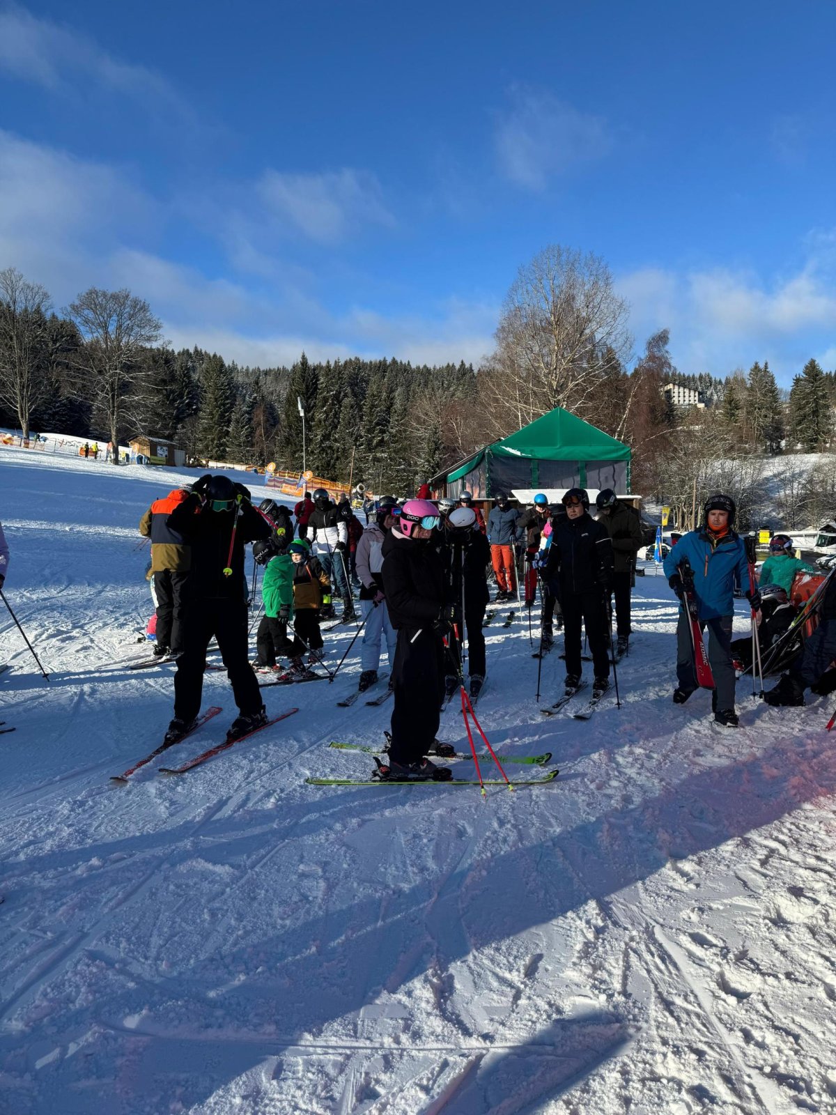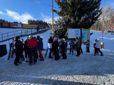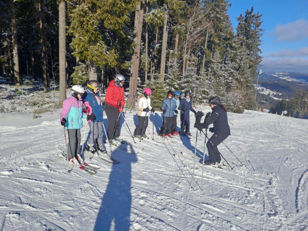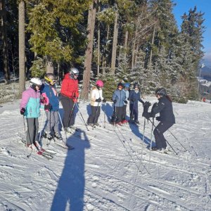 Počasí nám dnes opravdu přálo, dopoledne se ukázalo sluníčko a podmínky na svahu byly výborné. První a druhá skupina jezdila na Kobyle, třetí skupina pilovala základy na sjezdovce U Horejšů. Po odpoledním lyžování jsme zamířili rovnou do cukrárny – kdo měl chuť, dopřál si sladkou odměnu. Večer patřil soutěžím v reakční rychlosti na dotykových senzorech (BlazePod), kde si žáci vyzkoušeli rychlé reakce a bojovali o ceny, které je čekají ve čtvrtek.