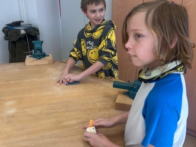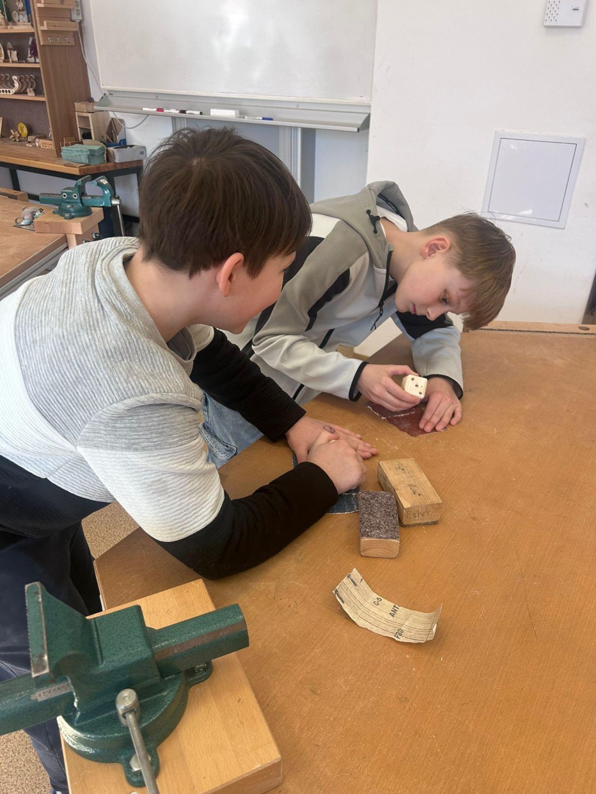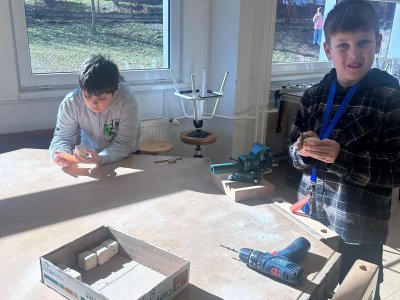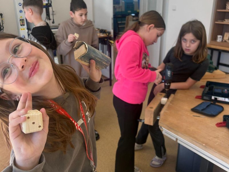 Ve třídě 4.B děti v dílnách dokončovaly výrobu hrací dřevěné kostky ?.