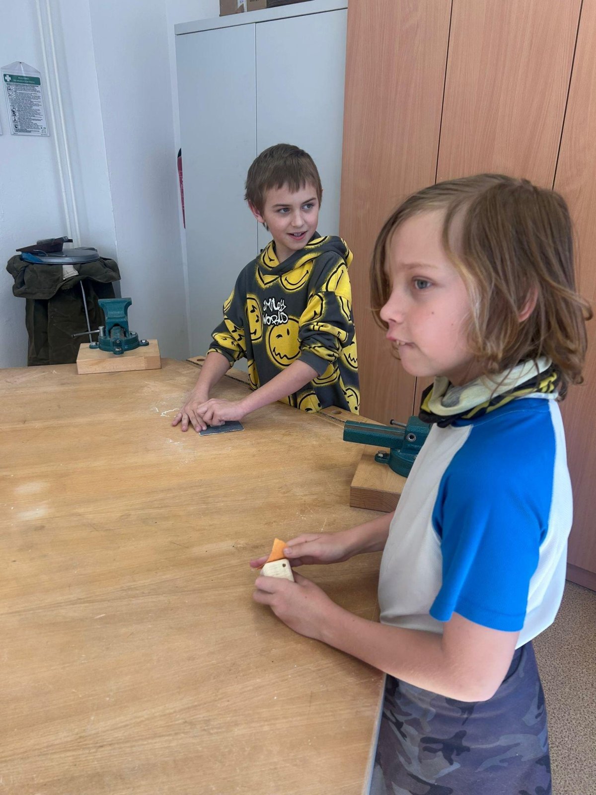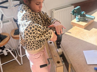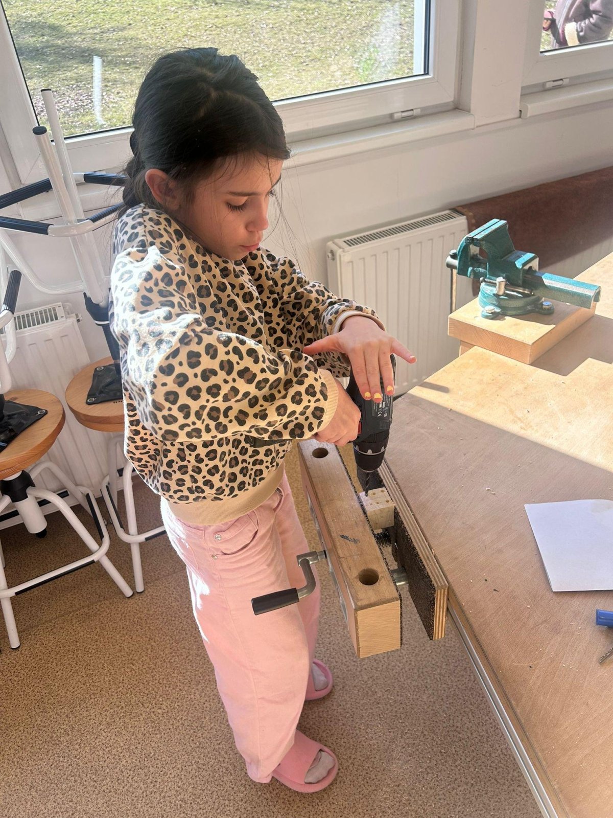 Při práci používaly vrtačku a svěrák, učily se přesně měřit, počítat a pečlivě smirkovat.