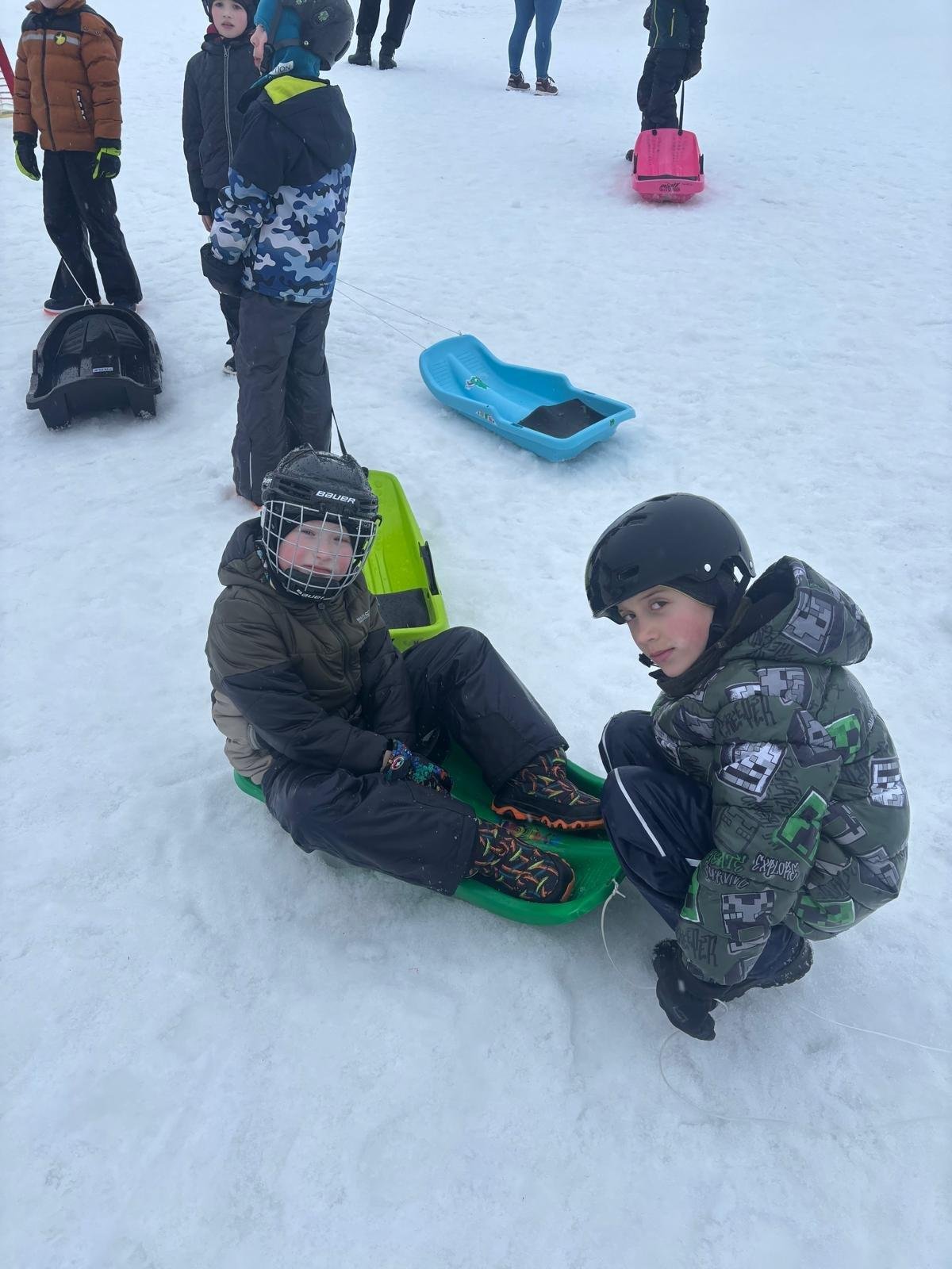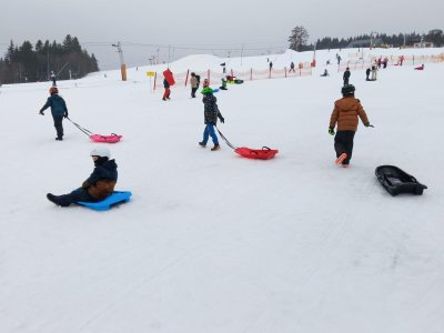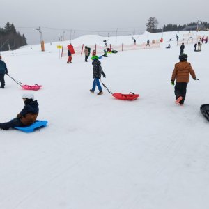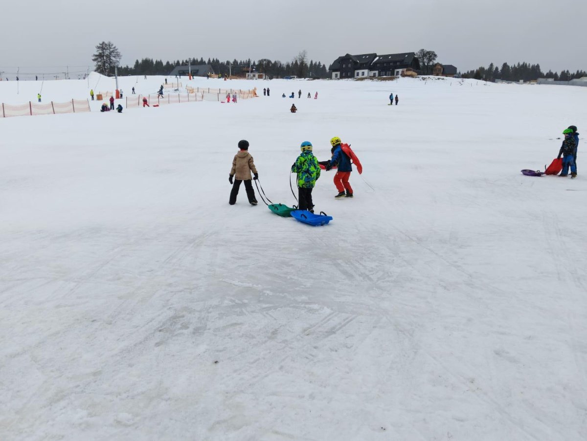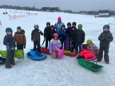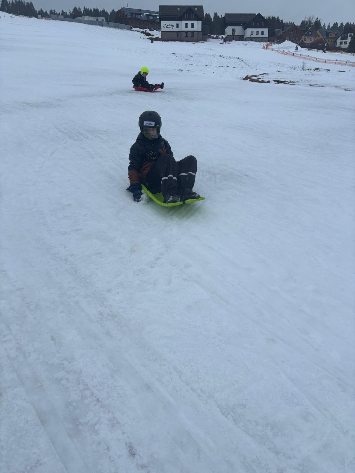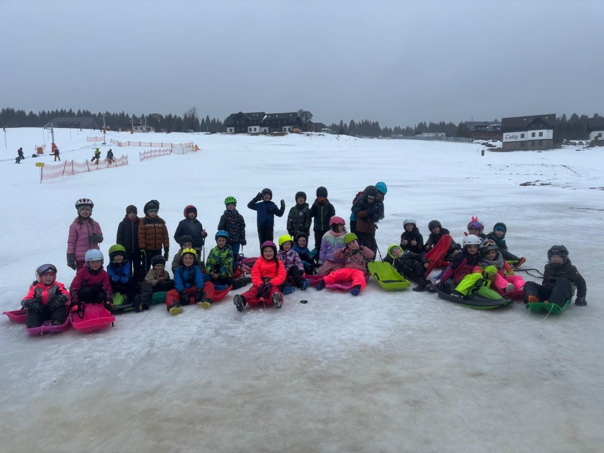 Bobování 2.A a 2.B – i když nám počasí úplně nepřálo, užili jsme si to naprosto báječně! Společně jsme strávili skvělé chvíle na sněhu.