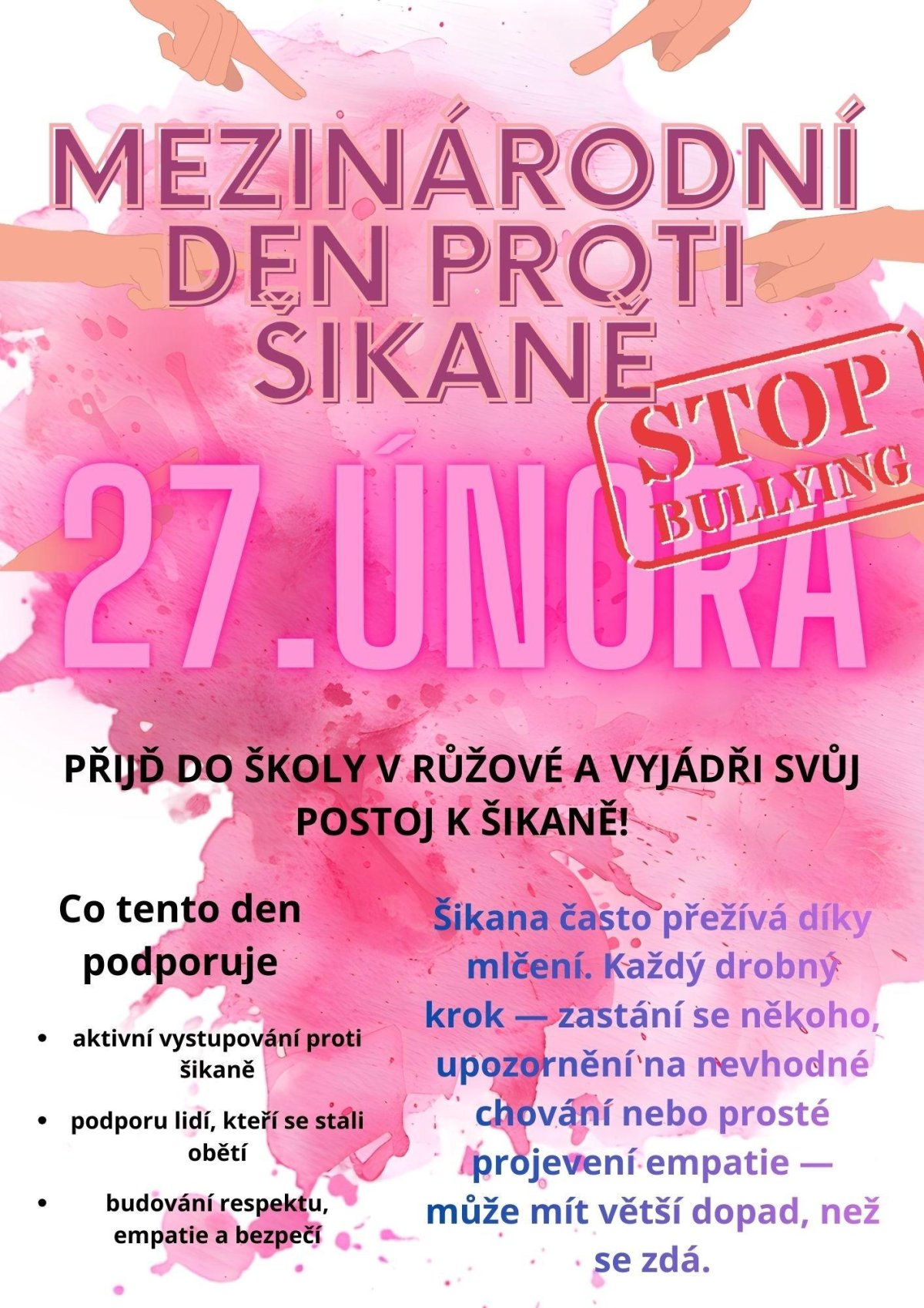 27. února se oblékáme do růžové a říkáme jasné NE šikaně.