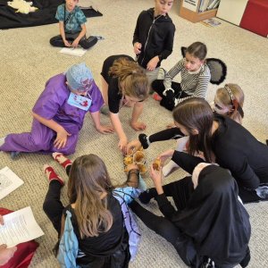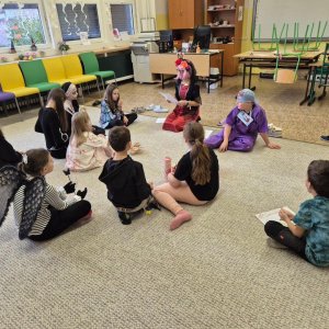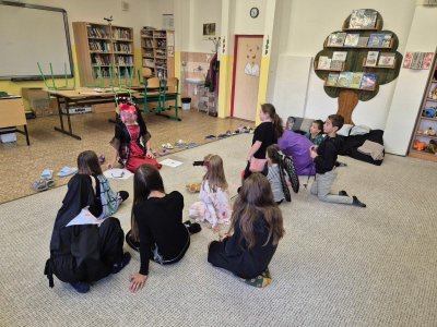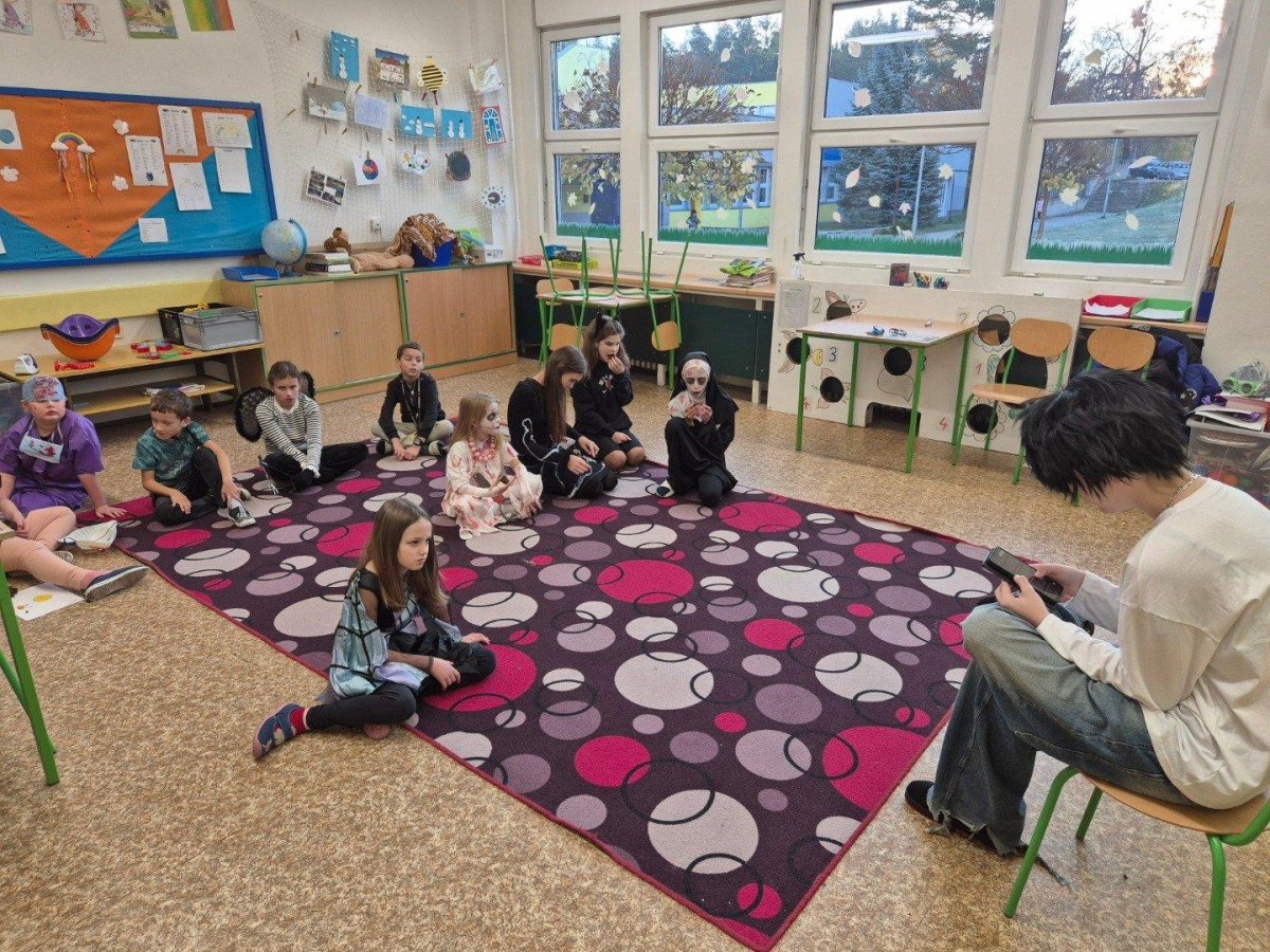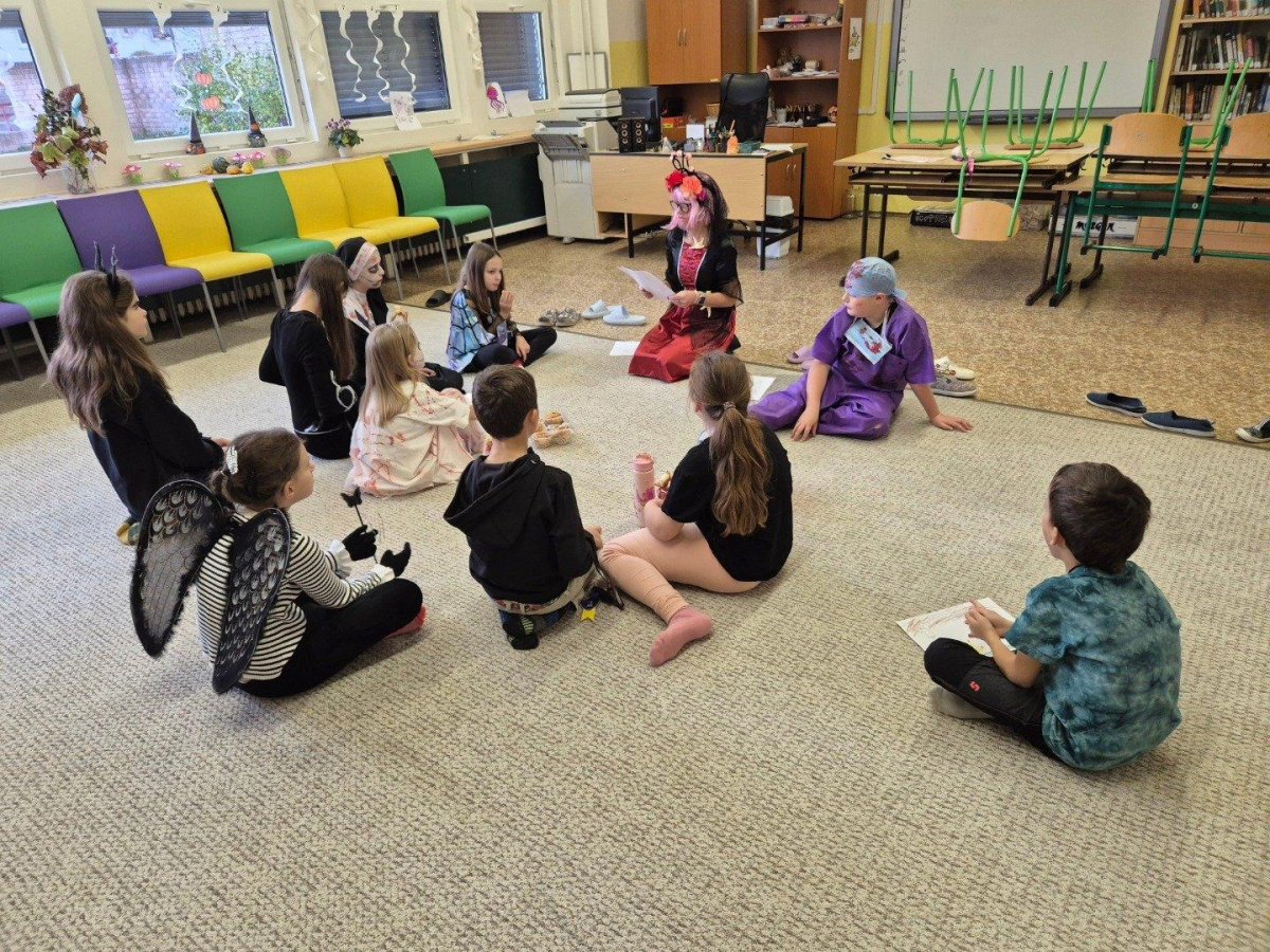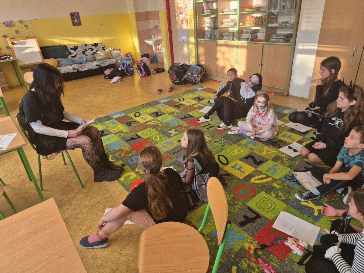 Dne 31. října proběhla na naší škole první „Snídaně s knihou“, tentokrát na téma Halloween. Žáci z 9.B si připravili tematické příběhy, které s nadšením četli dětem od 1. do 4. třídy. Mladší žáci byli rozděleni do skupin, ve kterých nejen poslouchali čtení, ale také společně vyplňovali pracovní listy inspirované příběhy.