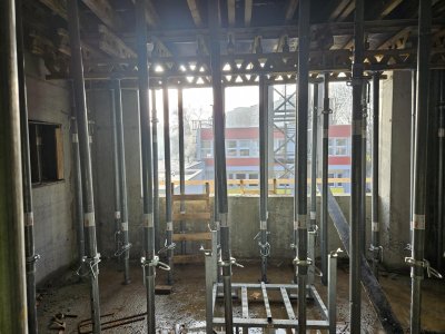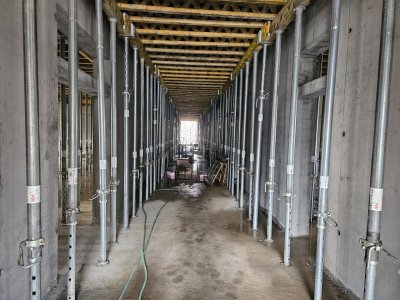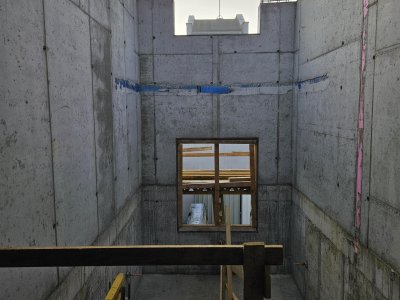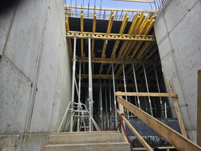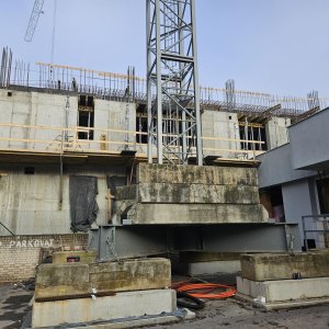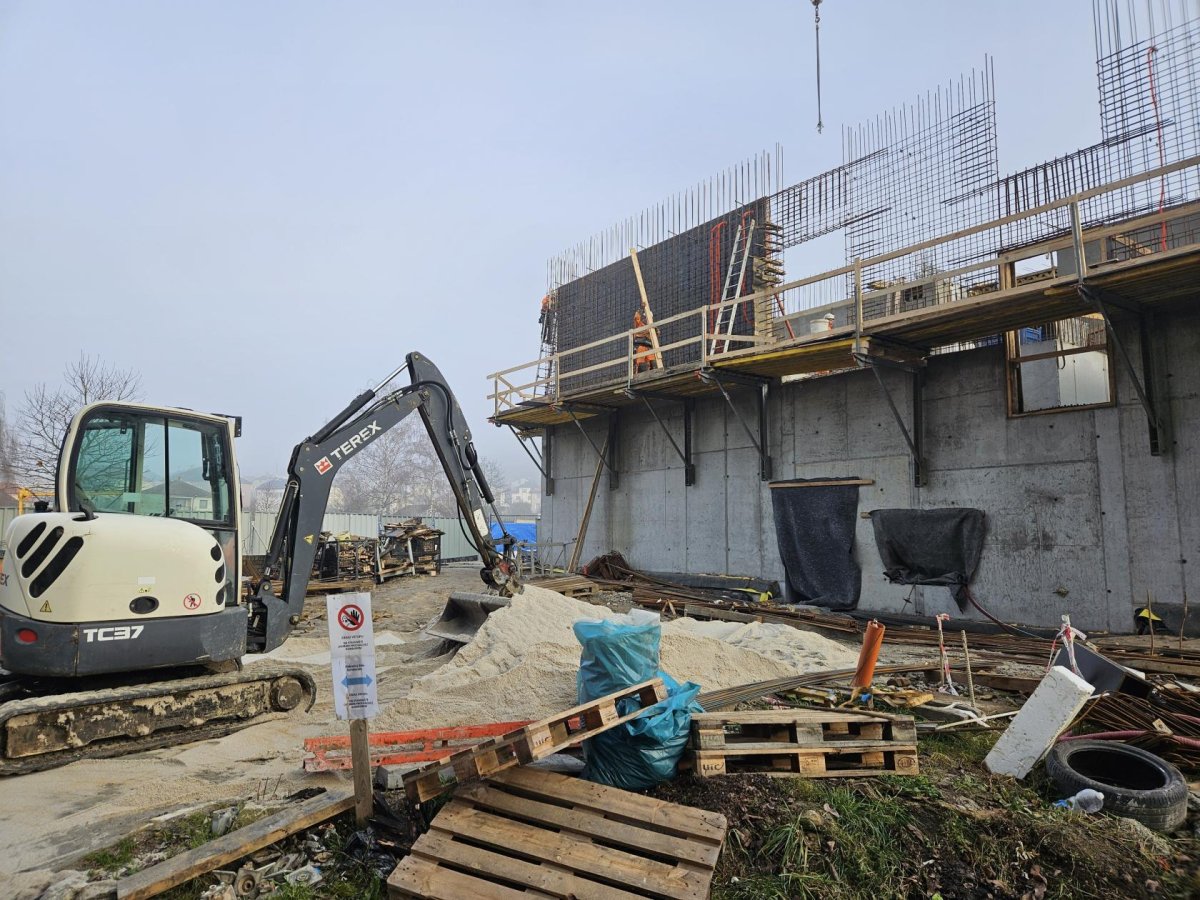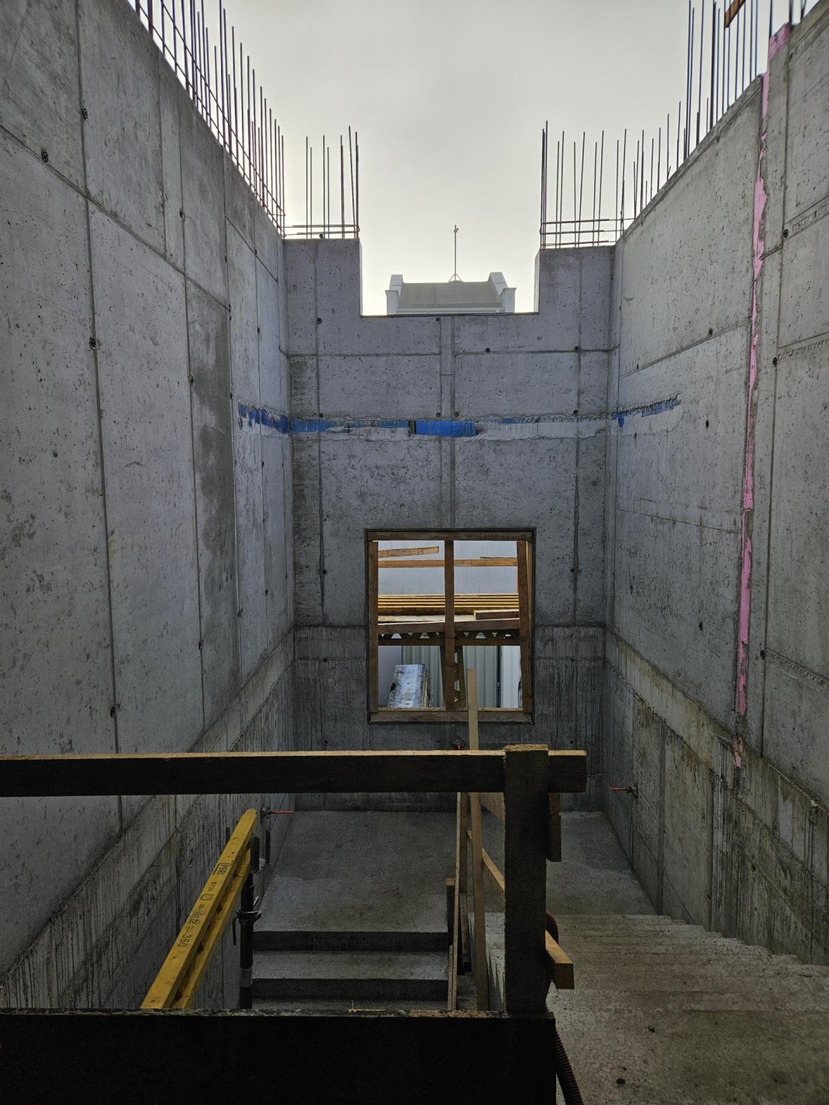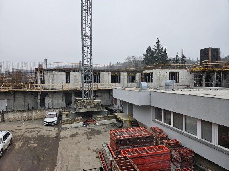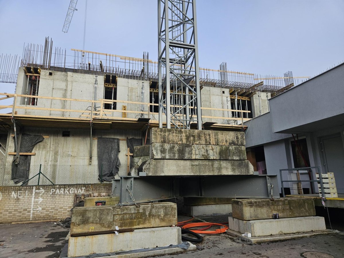 Aktuálně jsme na úrovni 2 NP, montují se výztuže a bednění stěn, parapetů a stropu 2 NP. V celém objektu probíhá příprava elektro. V 1 NP je již provedena hydroizolace, dokončuje se krycí vrstva mazaniny a bude hrubá podlaha.