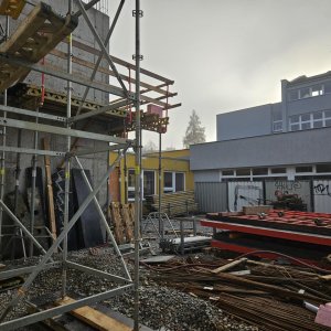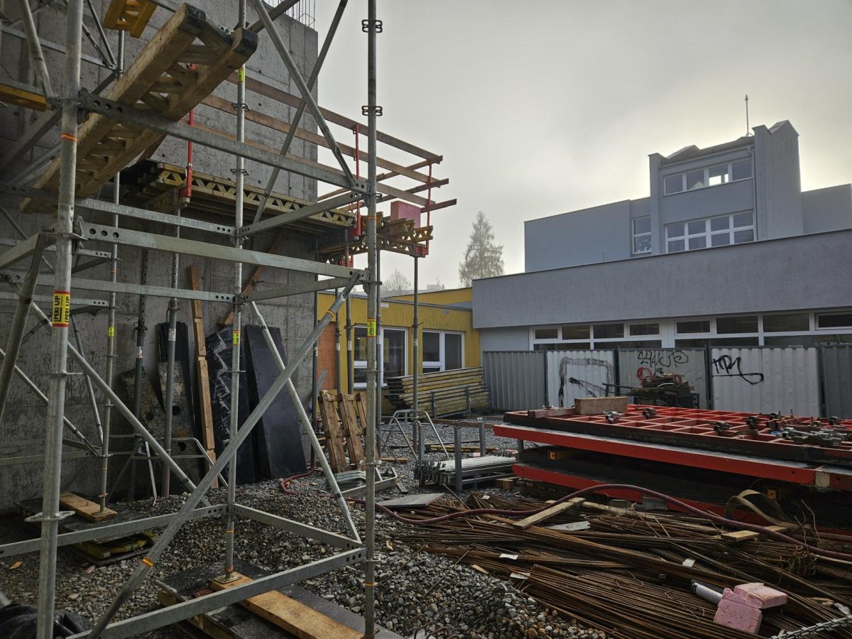 Práce samotné začaly v pondělí 6.1. 2025 předáním staveniště, následovala demolice starého objektu, pak zemní práce včetně geotermálních vrtů a následně se začala stavět Přístavba.