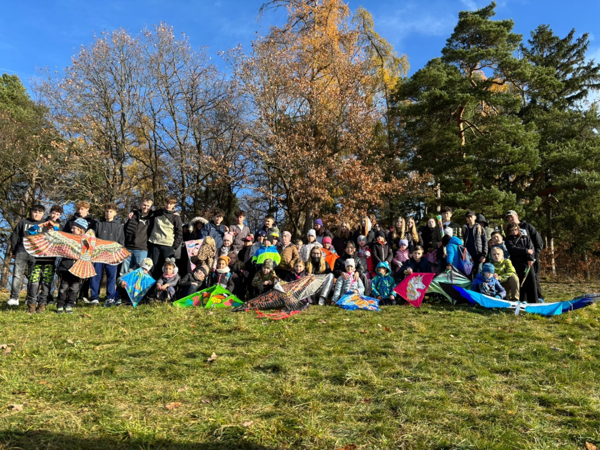 Deváťáci si se svými prvňáčky užili krásné dopoledne při pouštění draků. Přestože to zpočátku nevypadalo slibně a vítr téměř nefoukal, nikdo neztrácel naději. Děti společně běhaly po kopci, zkoušely různé způsoby, jak draky zvednout do vzduchu, a smály se při každém pokusu.