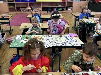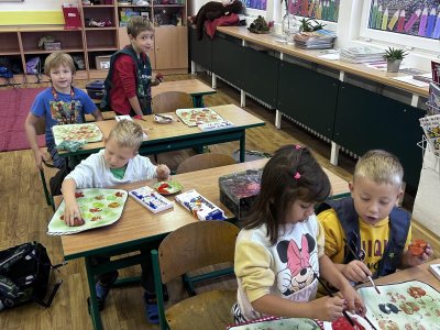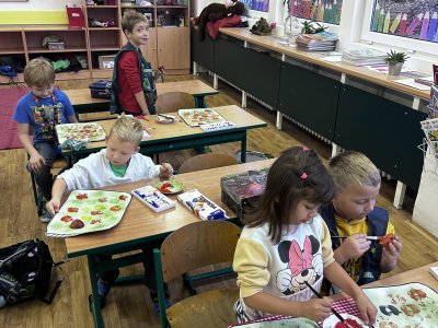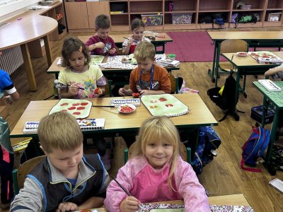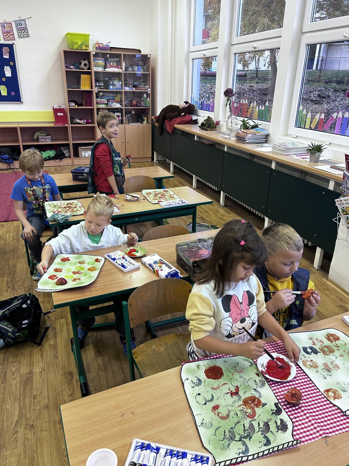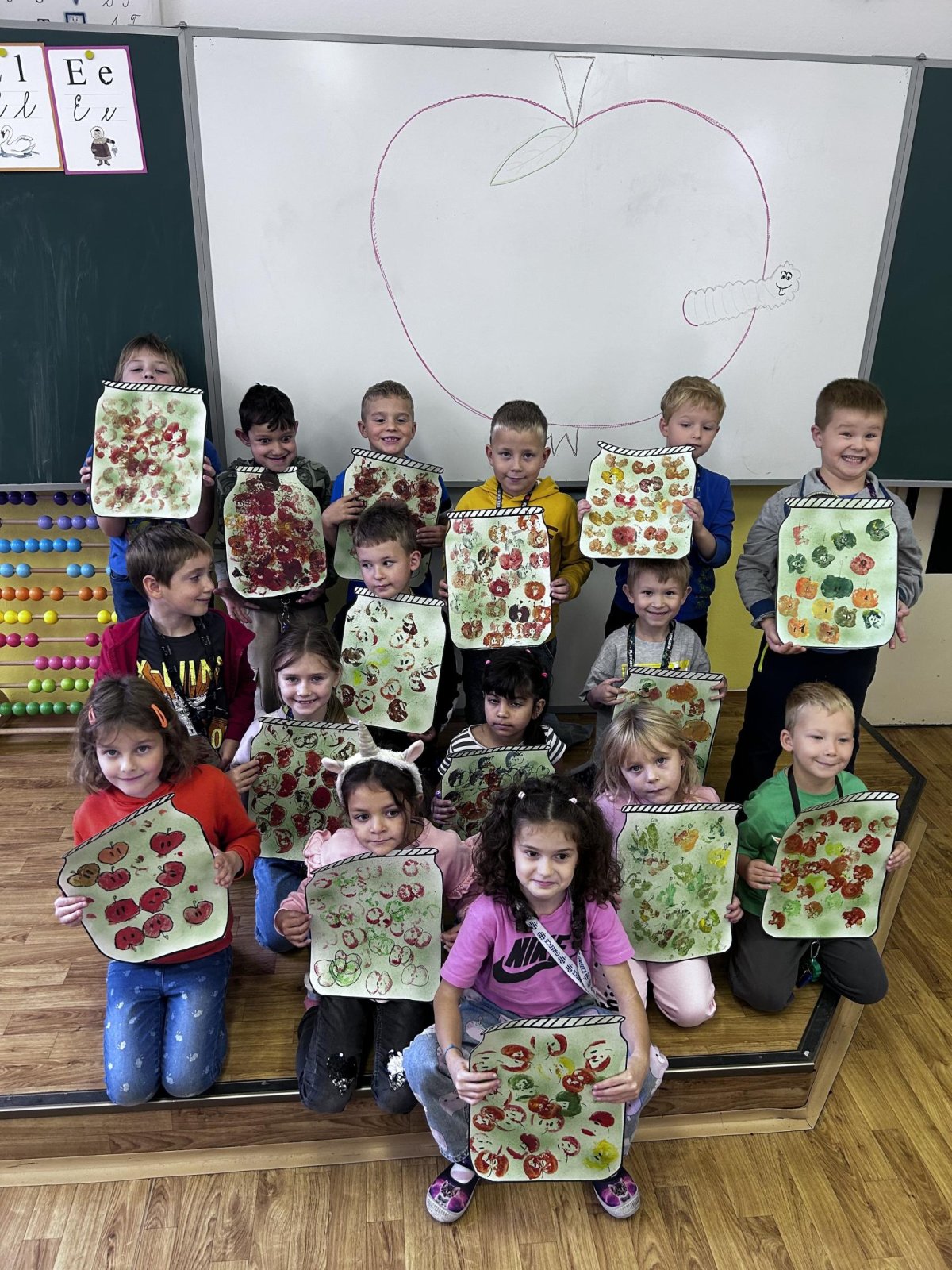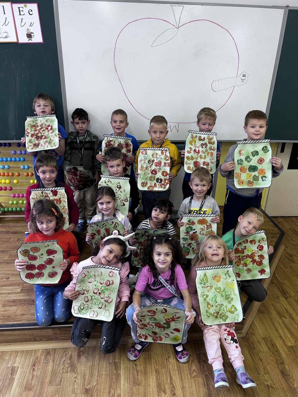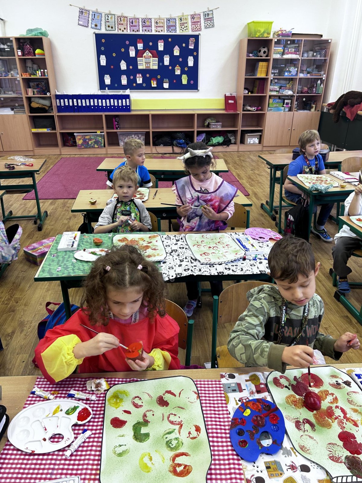 Dne 16.10. jsme si udělali tematický ? den. Jablíčka jsme obtiskovali, počítali, malovali, jedli a nakonec i pili. Akce se nám povedla, a tak nakonec byla sladká jablečná odměna ?