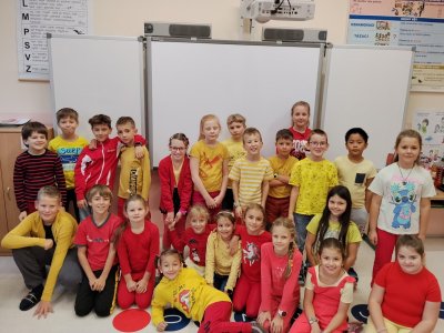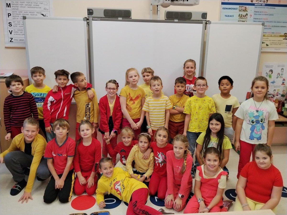 V červené a žluté barvě dnes přišel úplně každý! Díky 100% zapojení jsme získali 1.místo mezi třídami.