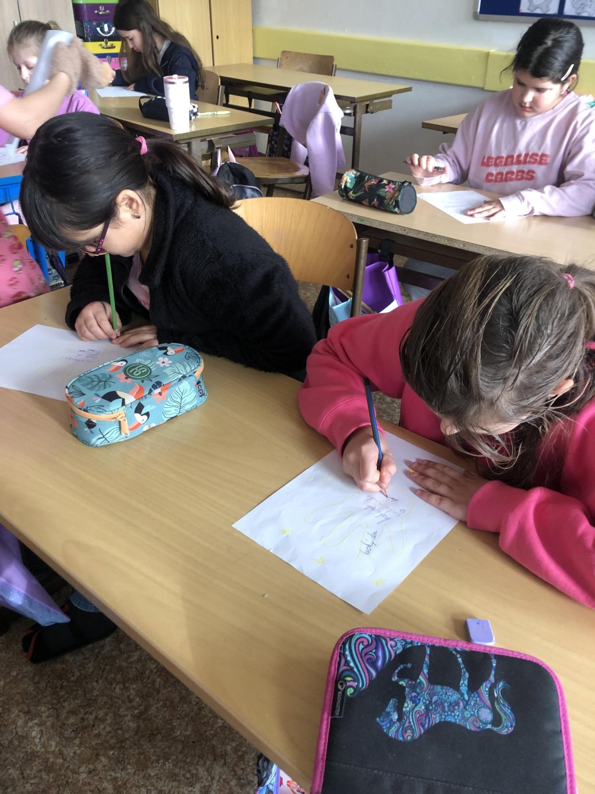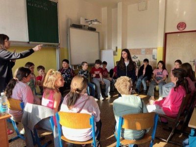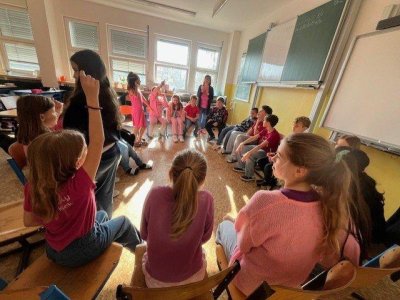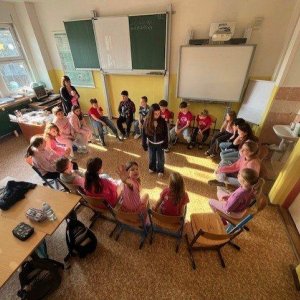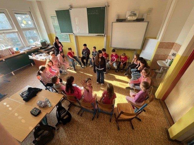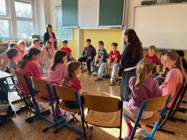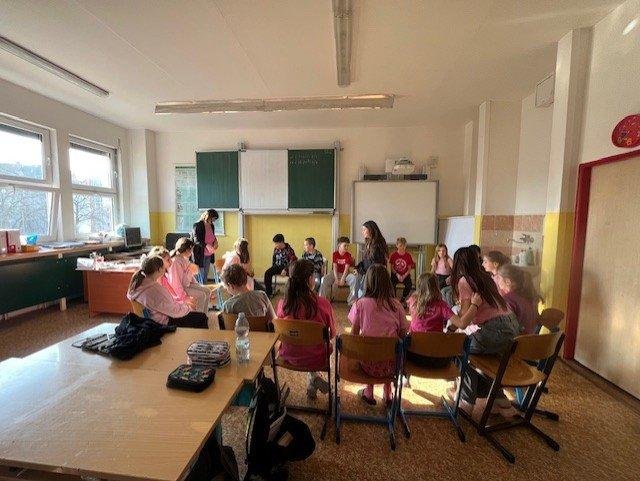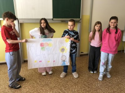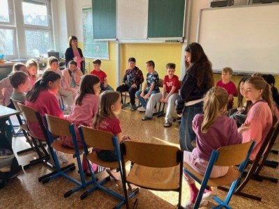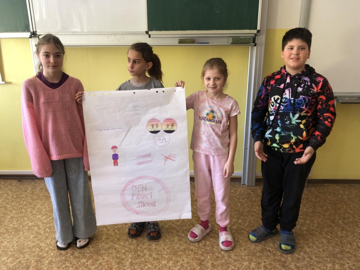 Dne 27.2. jsme měli Den s třídním učitelem na téma: "Nikdy si neubližujeme". Během čtyř vyučovacích hodin jsme absolvovali různé aktivity. Mezi nejzajímavější patřily "Ruka" a " Symboly třídy". Děti byly rozdělené na skupiny. Každá skupina vytvořila zajímavý pokřik, logo, vlajku, sochu na flip artový papír a na závěr všechny skupiny svoje výsledky práce odprezentovaly. Z činností jsme pořídili mnoho fotek.