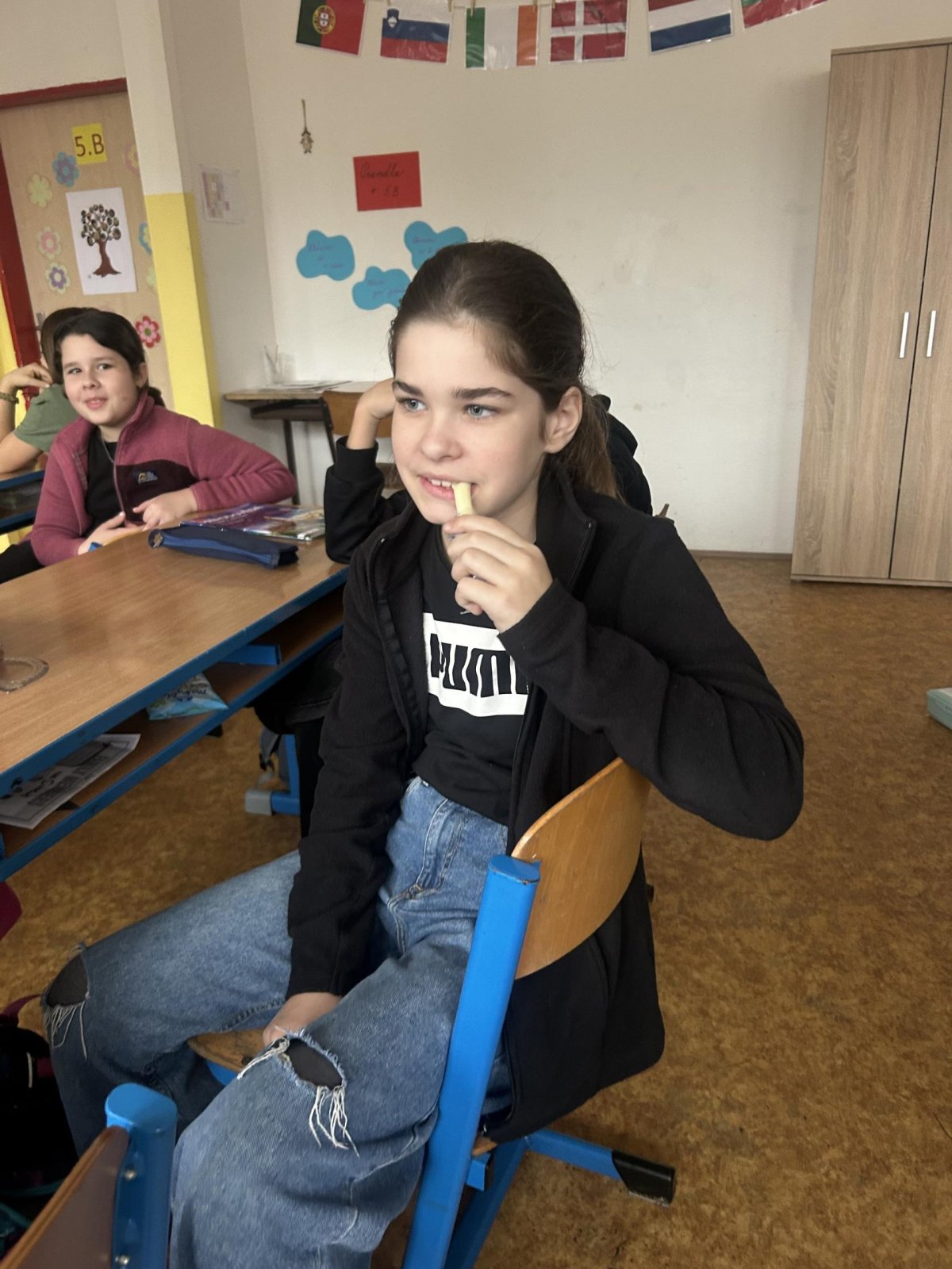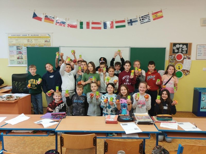 V rámci projektu "Ovoce do škol" jsme dostali do třídy ovocné džusy, jablka a jako bonus sýry a mléko firmy Madeta. Dětem všechny výrobky chutnaly, v naší třídě nebyl nikdo, kdo by si je nevzal.