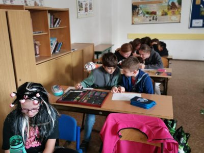 Po haloweenské party, kterou pro nás připravili žáci 9. B, jsme se v hodině českého jazyka zabývali tématem podzimních svátků. Mluvili jsme o tradicích a pracovali s textem, jenž se věnoval nejen Haloweenu, ale i Dušičkám, které jsou českému prostředí vlastní.