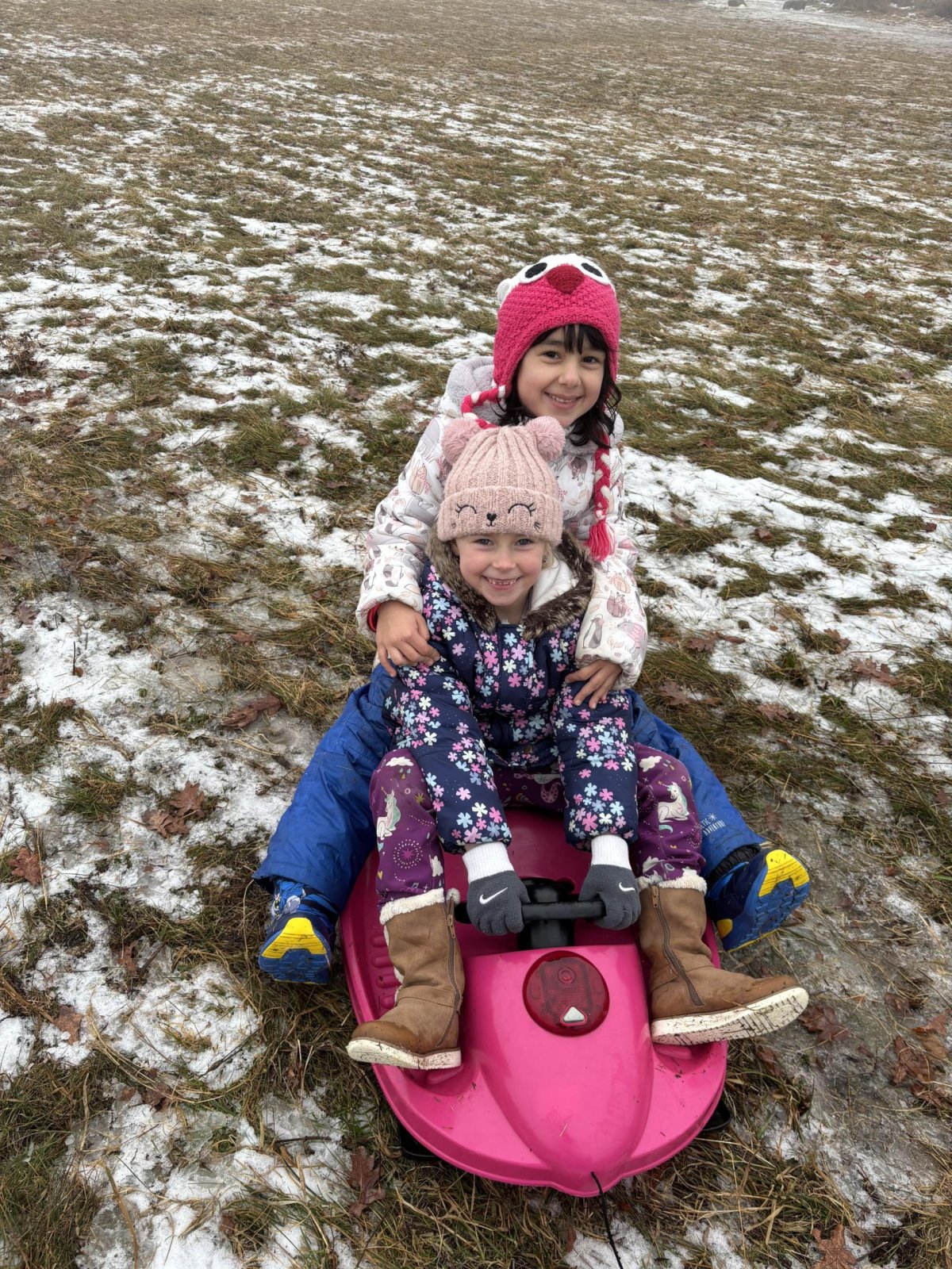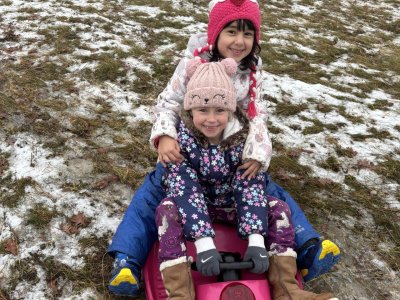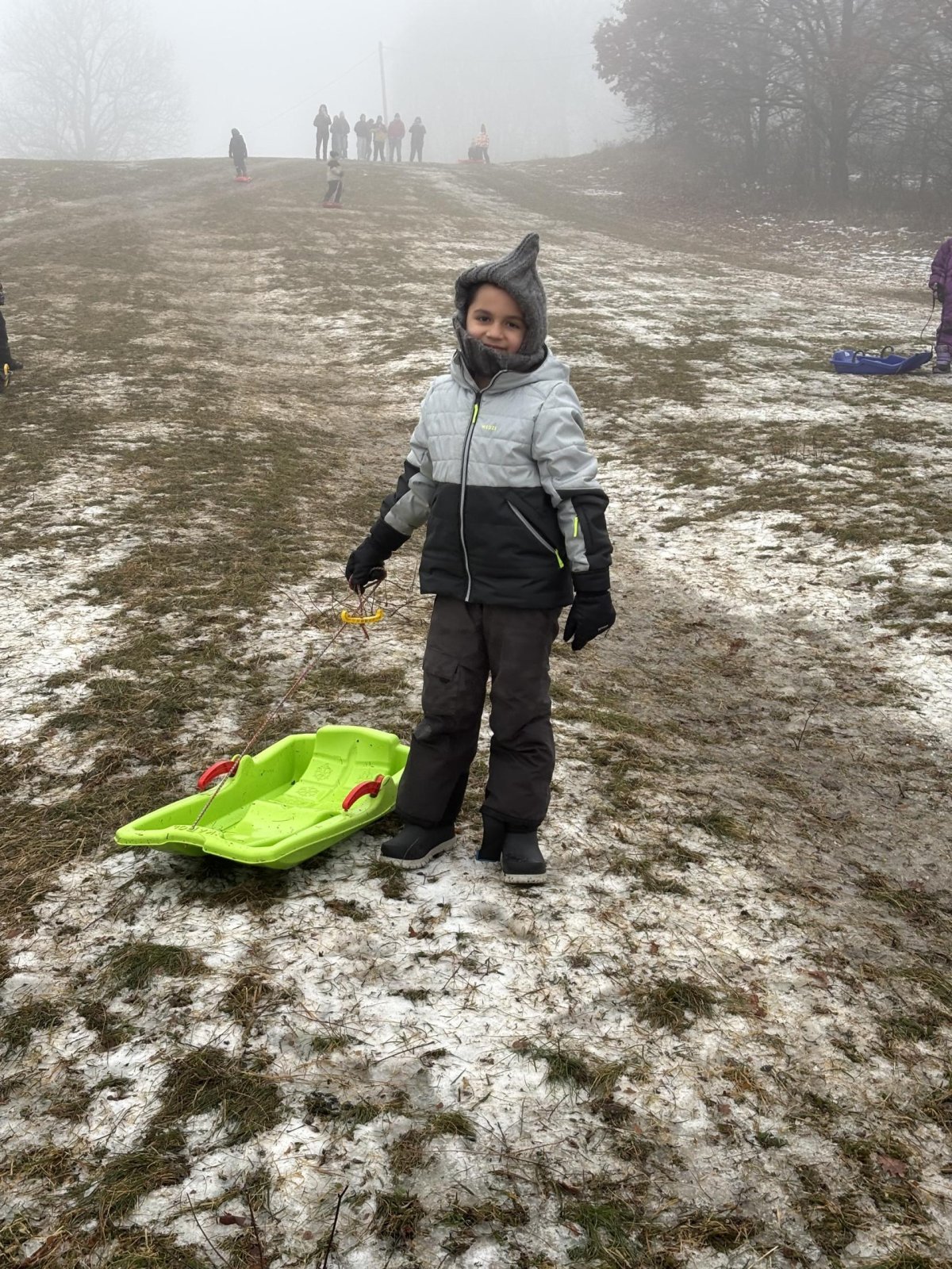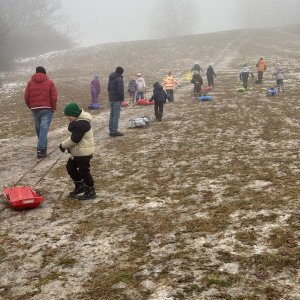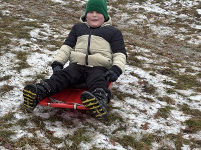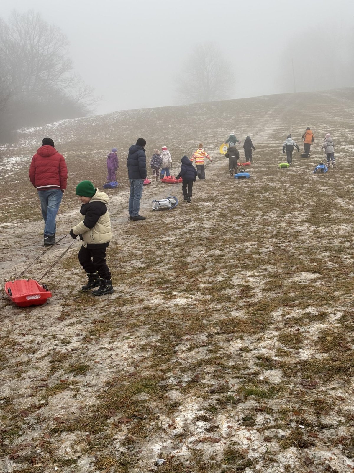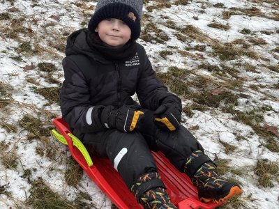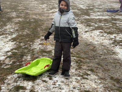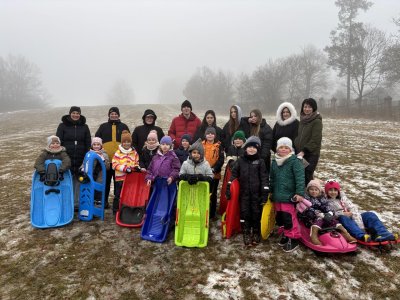 Na sněhu umí bobovat každý, ale na zmrzlé trávě? 1.A a 9.A si to opět společně opravdu moc užili. Děkujeme i rodičům za pomoc.