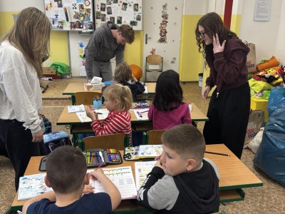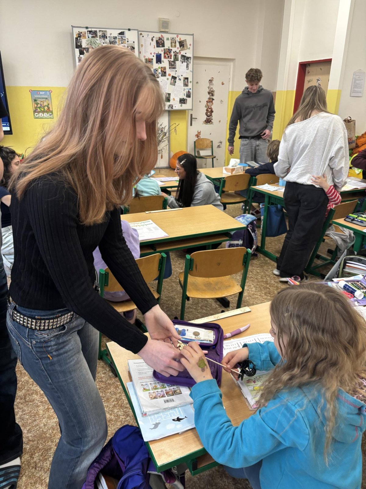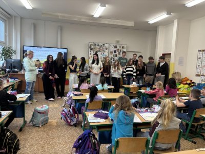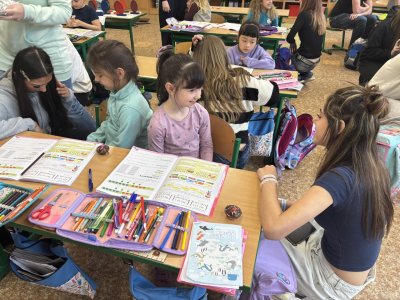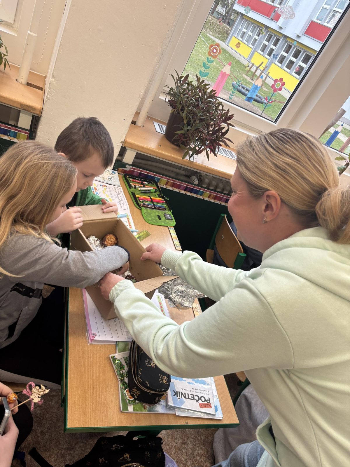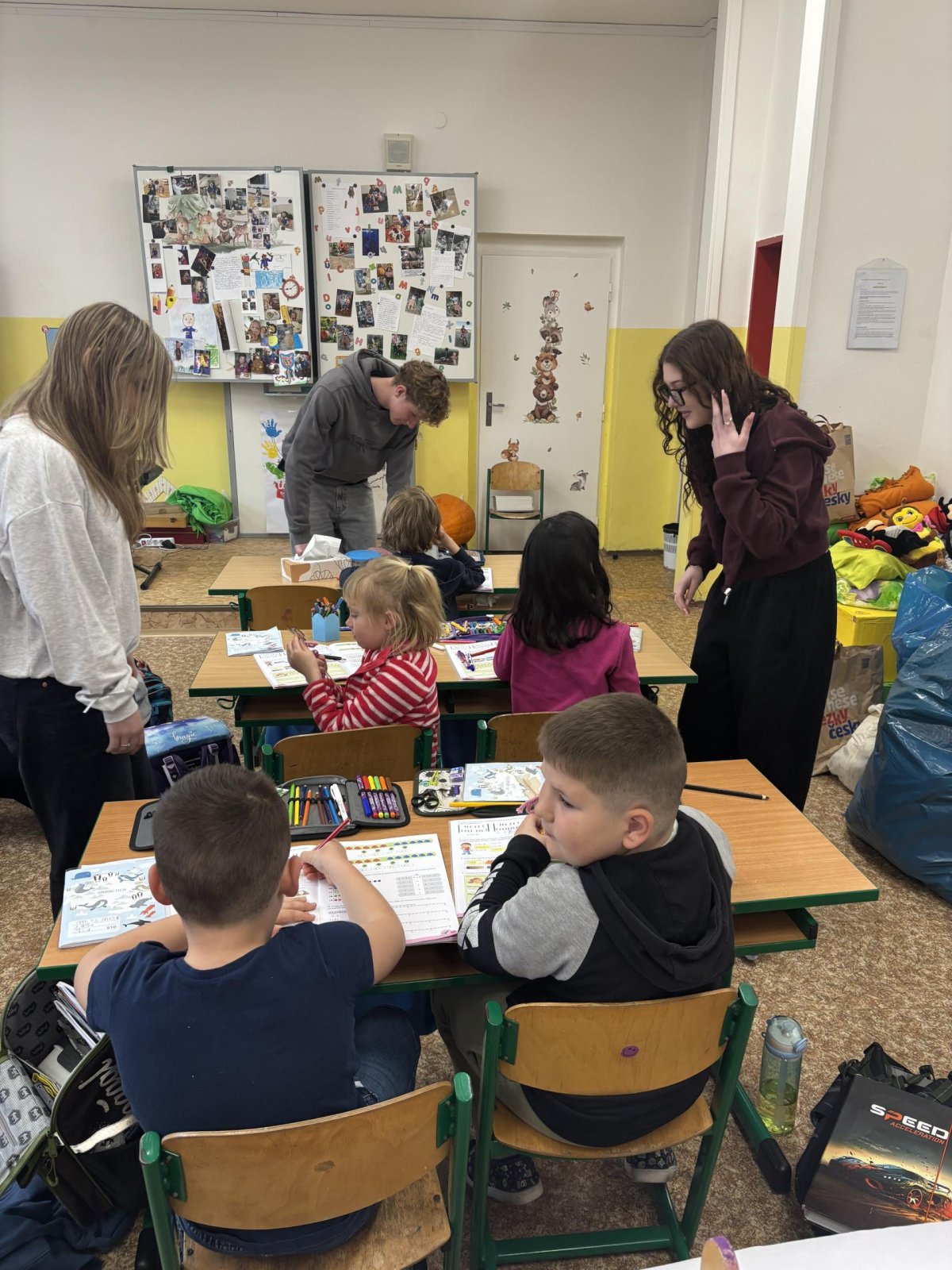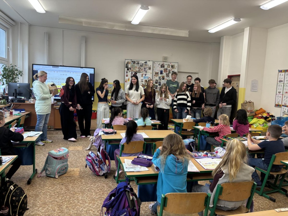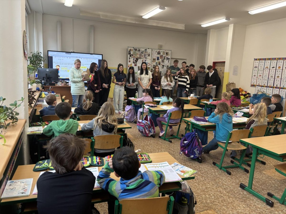 Deváťáci připravili prvňáčkům milé překvapení, dali prvňáčkům malý dáreček a chvilku s nimi popovídali. Děkujeme....